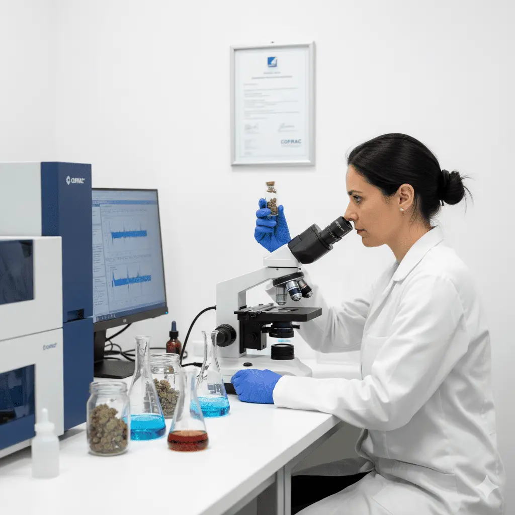 Nos produits sont rigoureusement testés par un laboratoire tiers accrédité COFRAC pour garantir l'absence de pesticides et de substances étrangères.
